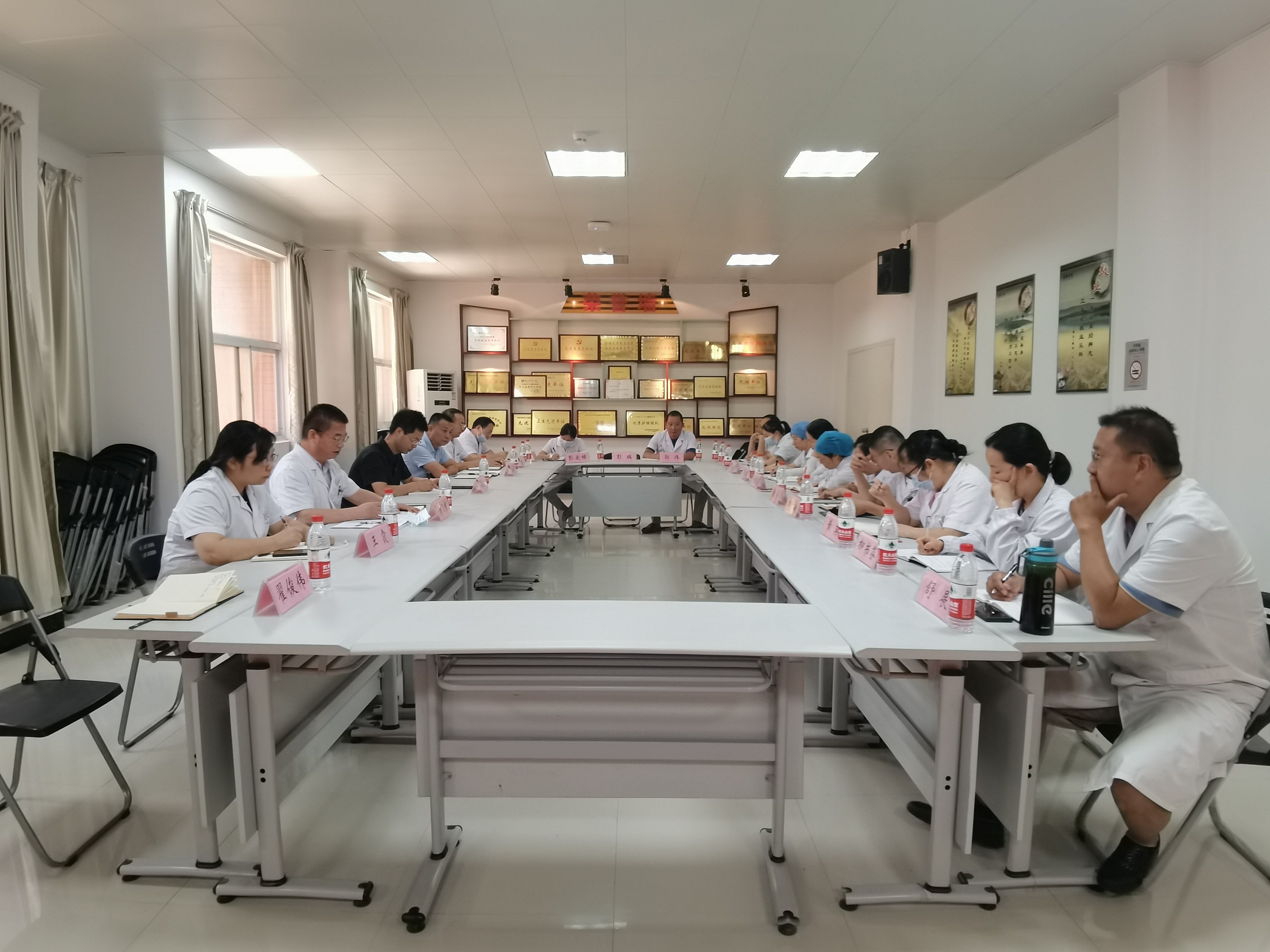 校医院党总支书记任卫华作总结讲话:首先传达学校开学工作布置会及迎新工作会议精神,重点做好全校传染病防控等重大突发公共卫生事件的监测和处置。新生报到期间医疗服务要高效、热情、精神饱满,给新生及家长留下良好的印象和体验。其次通报主题教育专题民主生活会情况,要将主题教育成果转化到实际工作中,对校联络组提出的问题逐项整改落实。营造“好医院”“好医生”形象,规范着装佩戴胸牌,党员佩戴党徽。最后关于新学期医院发展任务要求强调,全员要服务大局意识,不断提高医疗技术水平,加强医疗工作责任心,强化优质服务态度,谨记服务好师生健康是我们的根本任务,也是医院的生命线。