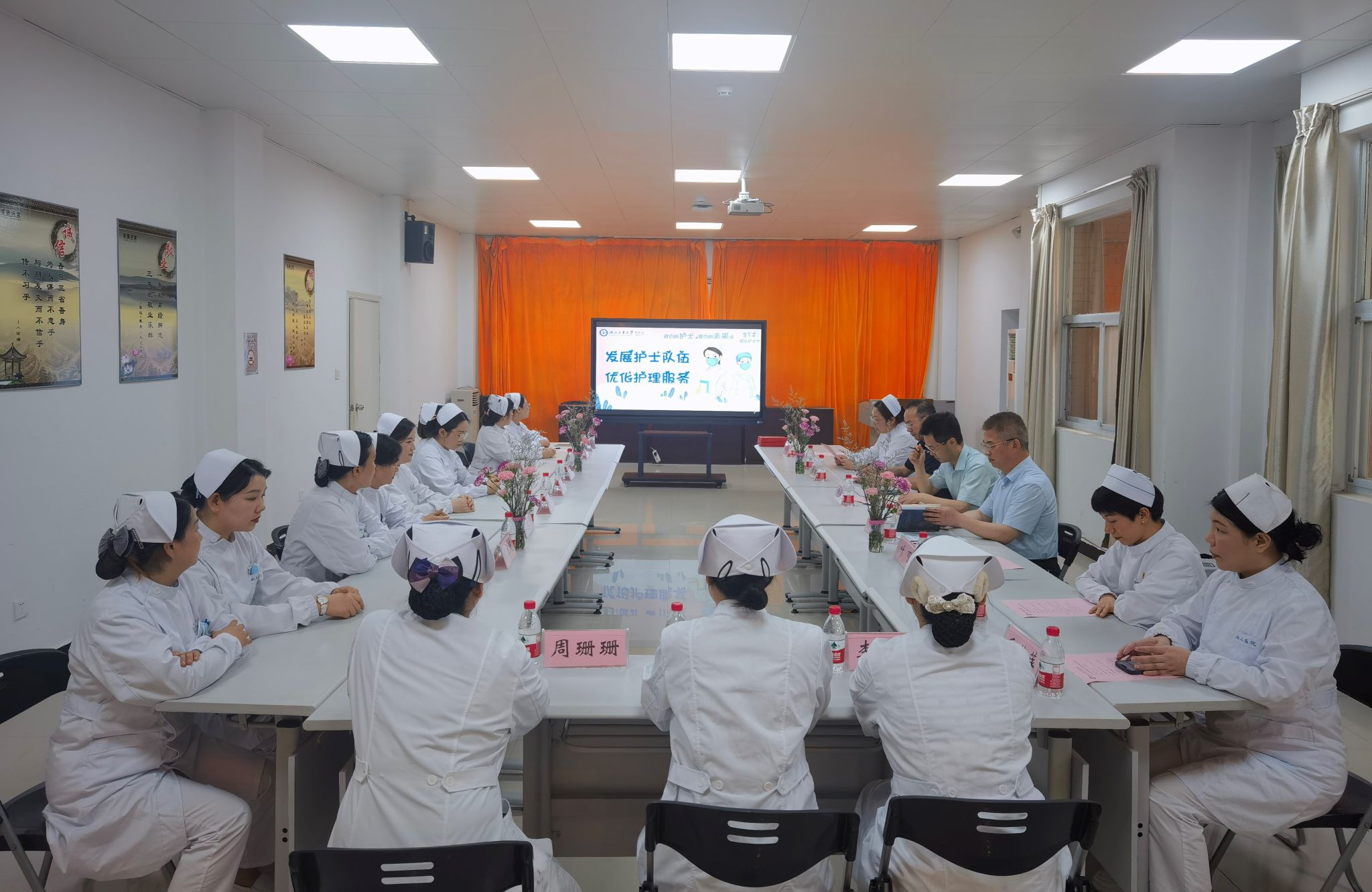 他表示,医院发展的每一个成绩都离不开全院护理团队,优秀的护理人员是大家敬仰的楷模,为工作刷新标准,为团队树立榜样。以医院高质量发展、学校“双一流”建设为目标,敢于追求更高的标准、更高的态度,不断自我完善,勇于创新探索,致力于提供无可挑剔的就医服务。