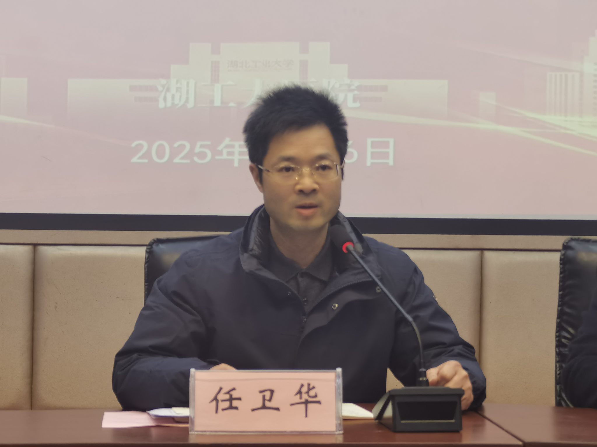 最后,党总支书记任卫华作动员部署讲话。他首先介绍了2025年学校发展的主题目标,分析了在科技发展进步的当下,校医院如何做好2025年发展规划的迫切,动员全体职工务必统一思想,用奔跑姿态保持发展。他对2024年校医院各科室取得的成绩予以了肯定,对不足的方面进行了细致的剖析、提炼了经验。并对2025年工作发展提出三点要求:一是服务。在全院提倡两个“度”,一个是医德医风“零容忍”的态度,一个是组织关心职工的温度。通过南湖门诊引进专家资源,派出人员进修学习,同步提高校医院医疗服务水平。二是安全。要求每位职工在工作中牢记医疗核心制度,坚守医疗安全底线原则。同时,他强调在日常中要时刻谨记消防安全、人身财产安全。三是发展。深度开展医卫融合工作,是决定医院可持续发展的重要举措,各科室协同配合,全体同志齐心协力。