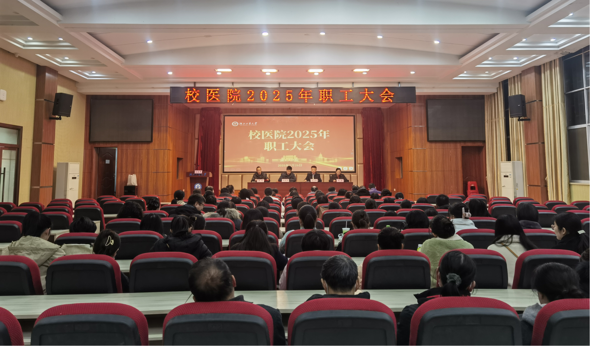 2月27日晚,校医院在博学堂召开全体职工大会。